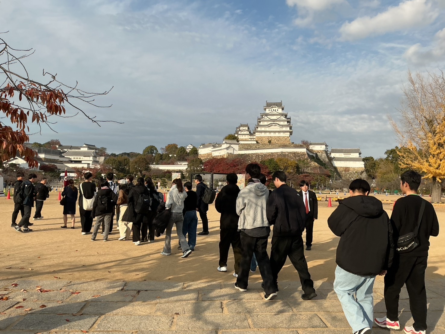 新幹線で姫路へ移動し、世界文化遺産に登録されている国宝姫路城を見学しました。