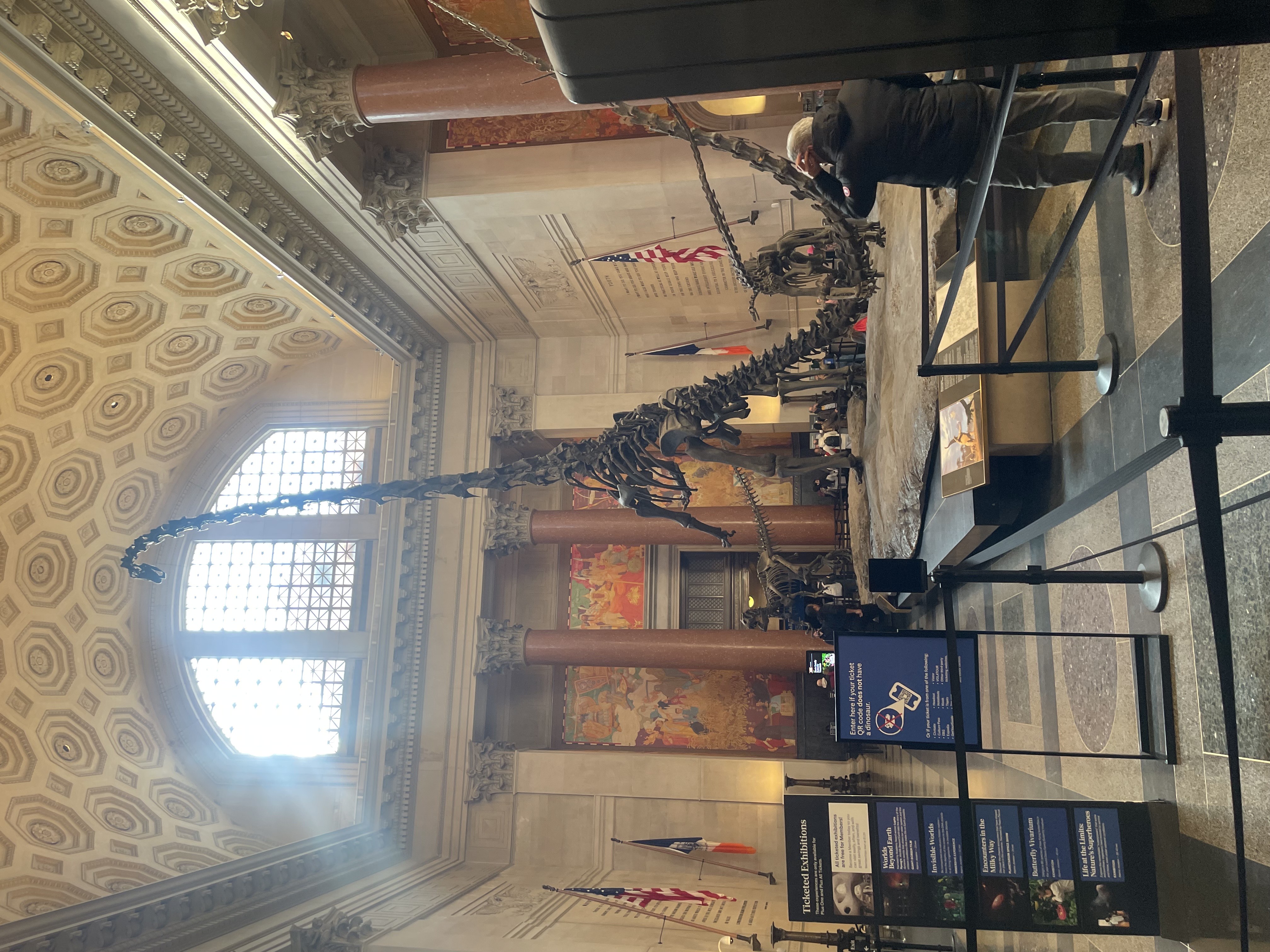 本日の午前は、「自然史博物館」に向かい、動植物や鉱物など自然科学や博物学に関する多くの標本を見ることが出来ました。世界有数の恐竜コレクションがあるなかで、バロサウルスの骨格標本には圧倒されました。その他にも宇宙の起源についての解説など、生徒たちは自身の興味のある分野を真剣に見学していました。