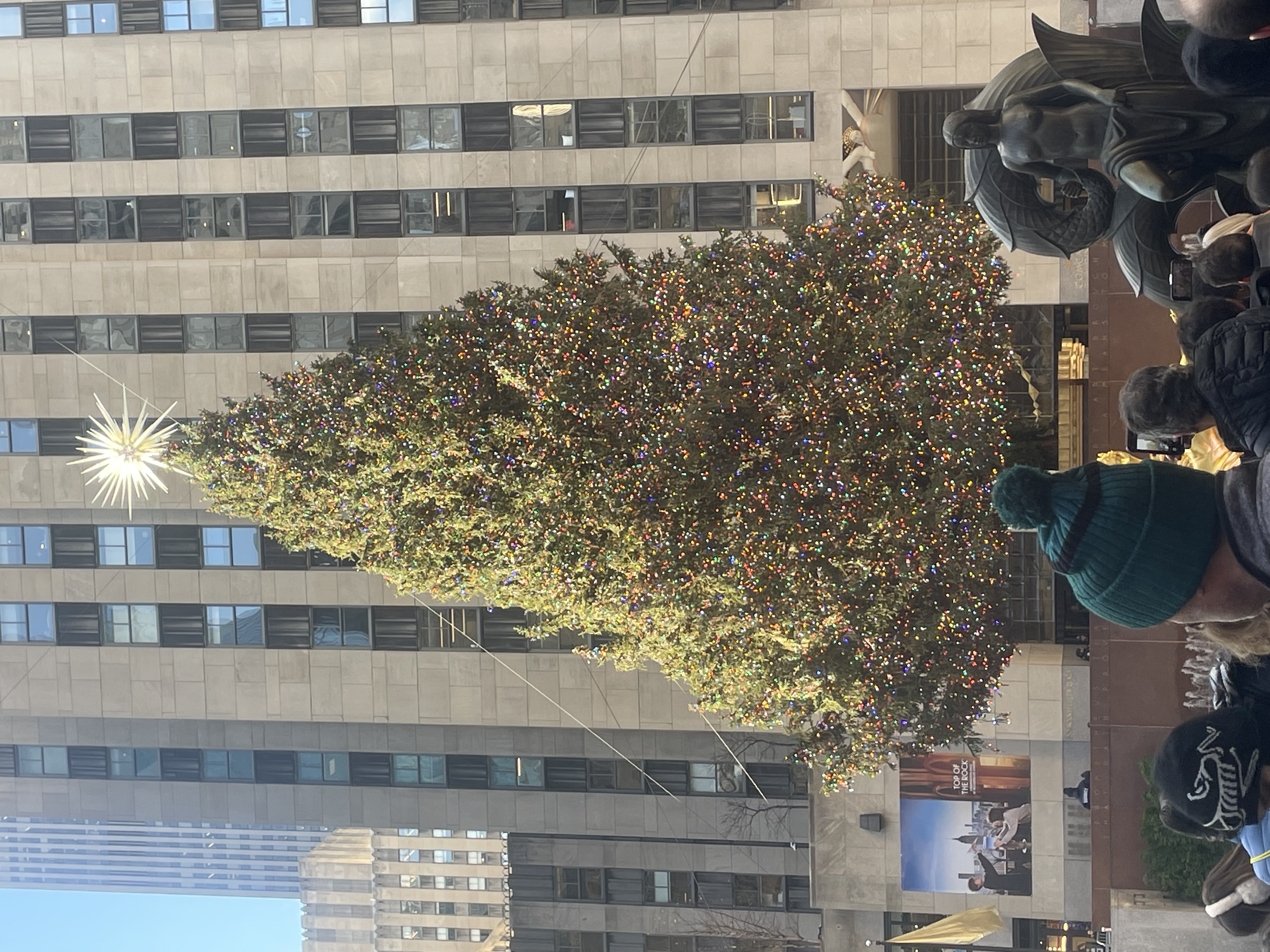 午後は、楽しみにしていた「タイムズスクエア」の自由散策を行いました。前日にロックフェラーセンターのクリスマスツリーの点灯式が行われたこともあり、世界中の人々が集まるなかで散策となり刺激を受けました。